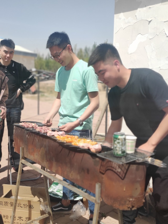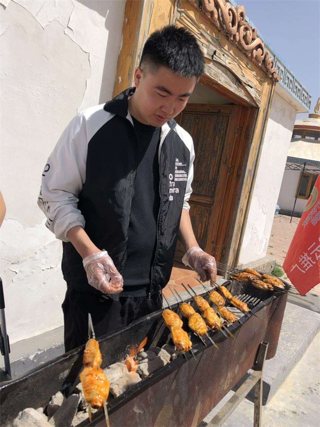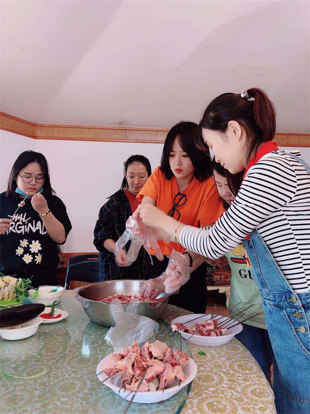 游戲過后,大家將提前準備的食材等物品拿到蒙古包,開始了戶外燒烤的準備工作,洗菜、穿串串、準備燒烤架等,分工明確,每個人都積極投入,很快烤串的香味彌漫在空氣中,烤串新鮮出爐。不 會燒烤的同事,也嘗試著做起了燒烤師傅,品味其中的樂趣,愉快得進行中午餐時光。